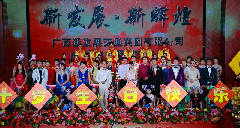 3月18日,“新發(fā)展?新輝煌”集團(tuán)公司十周年慶典文藝匯演在廣西交通職業(yè)技術(shù)學(xué)院大禮堂舉行。自治區(qū)總工會、區(qū)直機關(guān)工委、國土廳國土規(guī)劃院等區(qū)直有關(guān)部門,自治區(qū)交通運輸廳各部門、直屬各單位,廣西交投集團(tuán)、廣西建工集團(tuán)、廣西建筑業(yè)聯(lián)合會、各大銀行等有關(guān)單位的領(lǐng)導(dǎo),以及新發(fā)展交通集團(tuán)職工代表1000多人齊聚一堂,共同慶祝集團(tuán)公司成立十周年。