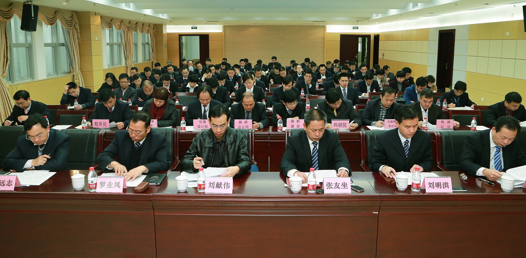 3月7日上午,集團(tuán)公司乘著兩會召開的東風(fēng),在南寧召開了2014年度工作會議。自治區(qū)國資委副主任、黨委委員覃衛(wèi)國,自治區(qū)交通運(yùn)輸廳黨組成員、總工程師王劼耘,自治區(qū)國資委企業(yè)改革改組發(fā)展處副處長劉獻(xiàn)偉出席了會議。集團(tuán)公司領(lǐng)導(dǎo)班子、直屬各單位領(lǐng)導(dǎo)班子、集團(tuán)機(jī)關(guān)全體人員共106人參加了會議。會議由集團(tuán)公司總經(jīng)理李定倫主持。