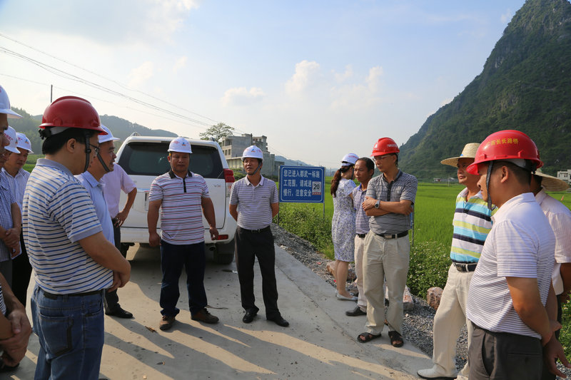9月10日至11日,集團公司董事長朱堅和、總經(jīng)理李定倫、副總經(jīng)理劉明洪等領導深入都安至武鳴公路、大化至巴馬公路建設一線,全面檢查項目年底通車建設進展情況。集團公司投資發(fā)展部、企業(yè)部負責人,路橋建設公司趙亞飛董事長、翔路公司羅光董事長等領導人員陪同檢查。