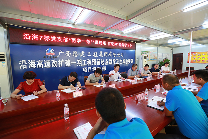 會前,朱堅和書記、張友坐副書記還到廣西路建集團沿海7標施工現(xiàn)場,了解項目的施工進展情況,并觀看了項目的“兩學一做”學習教育宣傳欄。