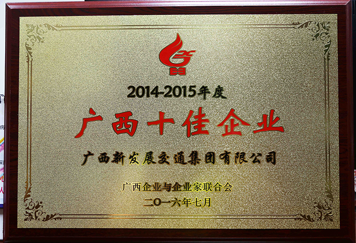 集團(tuán)公司獲得“2014-2015年度廣西十佳企業(yè)”榮譽(yù),集團(tuán)公司董事長(zhǎng)、黨委書(shū)記朱堅(jiān)和榮獲“2014-2015年度廣西優(yōu)秀企業(yè)家”稱號(hào)!