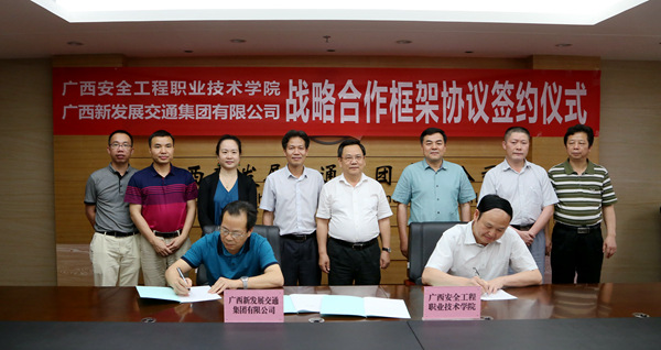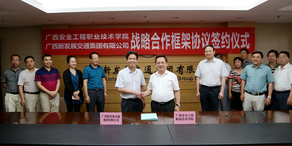 黎志逘祝賀雙方正式建立戰(zhàn)略合作伙伴關(guān)系。他說,廣西安全工程職業(yè)技術(shù)學(xué)院是經(jīng)廣西壯族自治區(qū)人民政府批準(zhǔn)成立、教育部備案的公辦全日制普通高等職業(yè)學(xué)院,隸屬廣西壯族自治區(qū)安全生產(chǎn)監(jiān)督管理局管理,是廣西唯一一所、全國第三所專門培養(yǎng)安全類高等專業(yè)技術(shù)人才的現(xiàn)代化職業(yè)學(xué)院。為了深入貫徹黨的十八屆六中全會和習(xí)近平總書記、李克強(qiáng)總理關(guān)于安全生產(chǎn)工作的重要指示批示精神,推動企業(yè)落實(shí)安全生產(chǎn)主體責(zé)任,在全社會凝聚弘揚(yáng)安全發(fā)展理念、支持安全生產(chǎn)的共識,“十三五”期間乃至更長一個時期,雙方將建立互信、互補(bǔ)、互援的戰(zhàn)略合作關(guān)系,開啟校企全面深入合作的新篇章。通過深入合作交流,促進(jìn)了廣西安全工程職業(yè)技術(shù)學(xué)院發(fā)展,提升了廣西新發(fā)展交通集團(tuán)有限公司在安全生產(chǎn)方面的實(shí)力,最終實(shí)現(xiàn)雙方的共贏。
