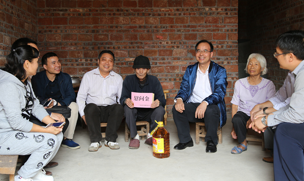 10月25日,集團(tuán)公司副總經(jīng)理李德智、辦公室主任磨立堂,工程院黨總支部書記、院長謝登禹以及合山市人大常委會主任藍(lán)賓北一行到集團(tuán)公司扶貧聯(lián)系來賓合山市河里鎮(zhèn)河里村開展精準(zhǔn)扶貧日走訪慰問活動。通過開展座談交流,進(jìn)一步掌握河里村脫貧攻堅進(jìn)展情況,并為下一步脫貧工作提出建議與對策。同時,還來到河里村韋啟助、羅耀權(quán)、曾有姣、韋遷池等貧困戶的家里,了解生產(chǎn)生活情況,并送上了慰問金和慰問品。