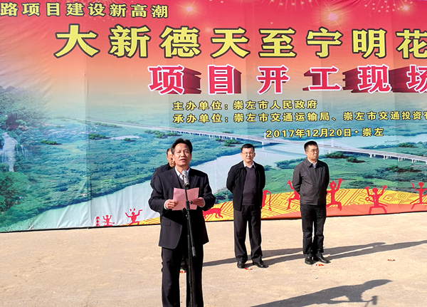 12月20日,崇左市大新德天至寧明花山公路舉行開工儀式,集團(tuán)公司黨委書記、董事長朱堅(jiān)和,集團(tuán)公司黨委副書記、副董事長、總經(jīng)理唐咸秋,路橋工程集團(tuán)及設(shè)計(jì)院有限公司相關(guān)負(fù)責(zé)人參加了開工儀式。