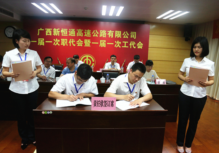 4月4日上午,新恒通公司一屆一次職代會(huì)暨一屆一次工代會(huì)勝利召開。會(huì)議全面貫徹落實(shí)黨的十九大及全國(guó)、全區(qū)交通工作會(huì)議和集團(tuán)公司2018年工作會(huì)議精神,全面總結(jié)公司成立三年來的工作,明確和部署2018年各項(xiàng)重點(diǎn)工作,共謀公司發(fā)展大計(jì),為奮力開創(chuàng)新時(shí)代“縣縣通”高速公路建設(shè)事業(yè)新局面而努力奮斗。集團(tuán)公司領(lǐng)導(dǎo)出席會(huì)議并發(fā)表講話,集團(tuán)公司派駐監(jiān)事會(huì)成員、41名正式代表、3名列席代表參加會(huì)議。公司黨委副書記、工會(huì)主席梁波主持會(huì)議。