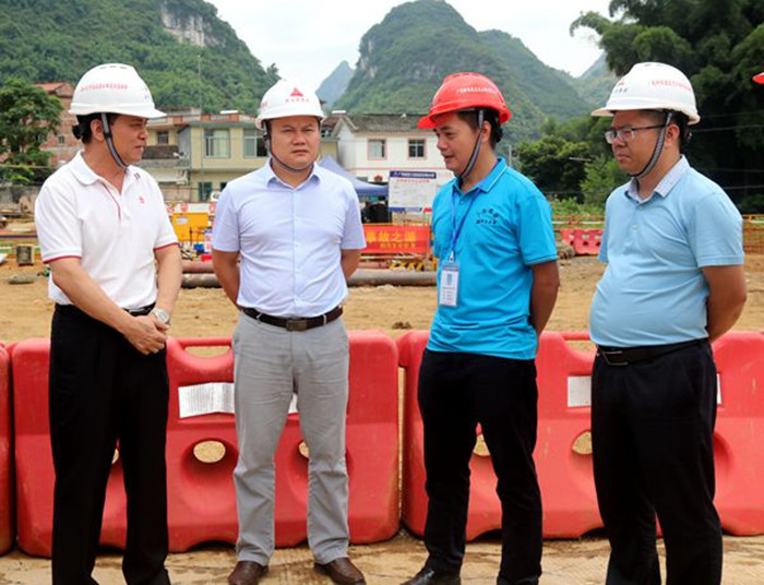 在為期兩天的督查工作中,督察組一行沿著融河高速主線縱向便道深入到施工建設一線,重點對武陽江大橋、雙合隧道、羅城服務區(qū)、古毛大橋、小隘特大橋等關鍵控制性工程的建設進展情況進行實地調研督查,同時對指揮部、總經理部及五個分部進行質量、安全內業(yè)資料檢查。督察期間,唐咸秋與河池市政協(xié)副主席蘇志宏就融河高速沿線征拆工作、高壓桿線遷移等問題進行了磋商,并與設計單位就相關設計問題進行探討。