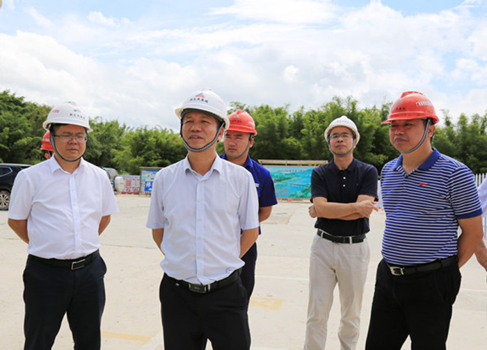 圖為朱堅(jiān)和董事長(左二)在桂江大橋施工現(xiàn)場調(diào)研