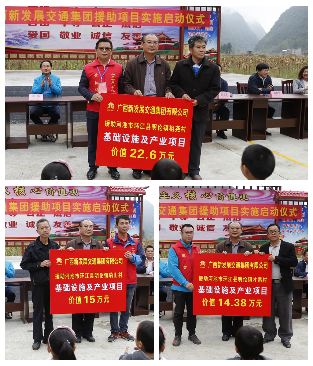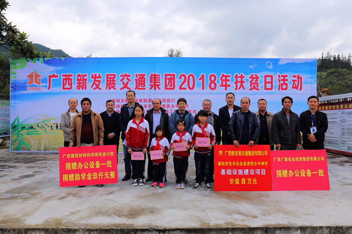 2018年10月17日是我國第5個(gè)扶貧日,按照自治區(qū)統(tǒng)一部署,新發(fā)展交通集團(tuán)以“扶貧助困 共同前行”為主題,深入環(huán)江縣、樂業(yè)縣、合山市5個(gè)扶貧聯(lián)系村開展走訪慰問、基礎(chǔ)設(shè)施建設(shè)及產(chǎn)業(yè)項(xiàng)目援助、金秋助學(xué)、志愿聯(lián)建等活動(dòng)。