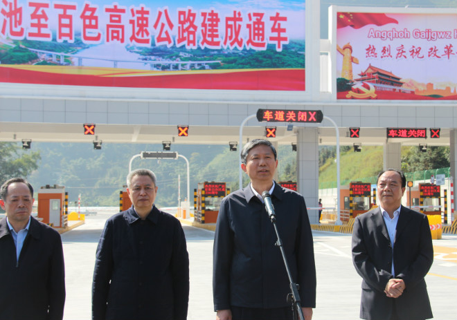 11月28日,河池至百色高速公路正式建成通車,自治區(qū)副主席費(fèi)志榮到場祝賀并進(jìn)行致辭。