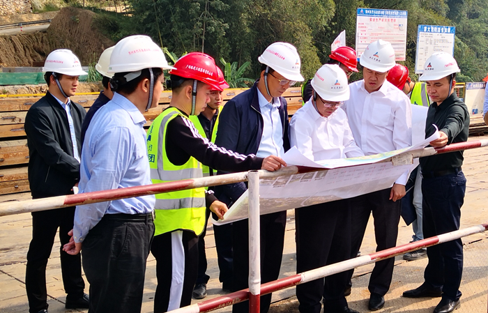 李定倫一行到紅水河特大橋一線施工現(xiàn)場與建設(shè)人員深入溝通交流,詳細(xì)了解項目進(jìn)展情況,聽取當(dāng)前項目建設(shè)存在的重點(diǎn)難點(diǎn),對項目建設(shè)的總體規(guī)劃和方案提出意見,并要求指揮部和各參建單位齊心協(xié)力、科學(xué)謀劃布局,認(rèn)真研究可行性方案,落實建設(shè)責(zé)任,嚴(yán)把質(zhì)量安全關(guān),確保紅水河特大橋項目建設(shè)高效、扎實、快速推進(jìn)。