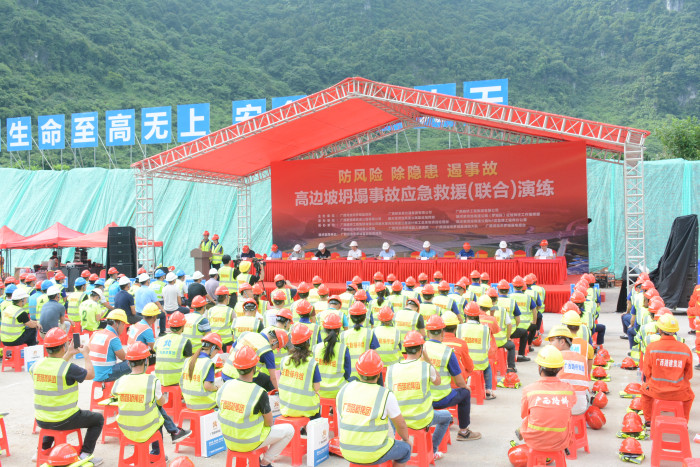 作為“防風(fēng)險(xiǎn) 除隱患 遏事故”主題“安全生產(chǎn)月”活動(dòng)內(nèi)容之一,該演練結(jié)合融水至河池高速公路項(xiàng)目施工中存在的高邊坡坍塌重大危險(xiǎn)源的特點(diǎn),旨在加強(qiáng)參建人員安全防范意識(shí),提高安全應(yīng)急處置、救援能力。