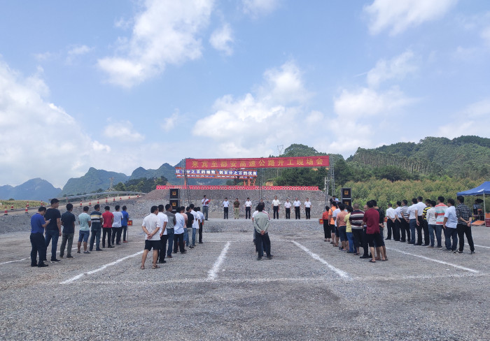 開工現(xiàn)場會在河池市都安瑤族自治縣召開。廣西北部灣投資集團有限公司黨委副書記、副董事長、總經(jīng)理高新宣布項目開工。自治區(qū)高速公路管理局局長周北,河池市委常委、市人民政府常務(wù)副市長韋朝暉等領(lǐng)導(dǎo)參加會議。