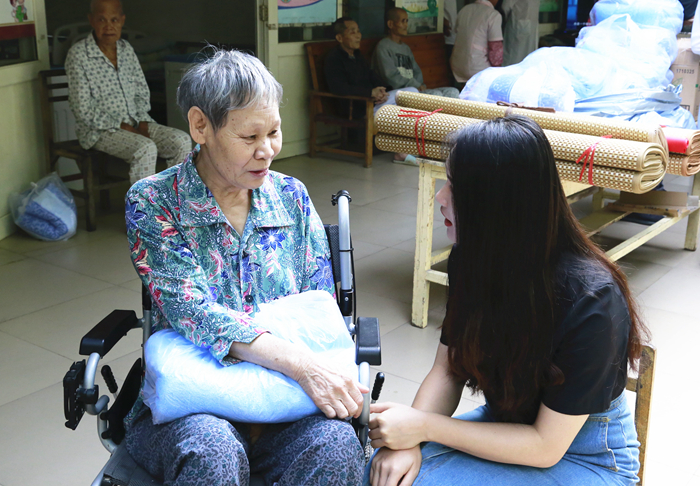 活動開展當天,來自本部的10名志愿者代表將慰問物品送到了老人身邊。護老院護工黃阿姨笑盈盈道:“你們送來的東西太實用了。入秋微涼,蚊子也還比較多,席子、毛巾被、滅蚊器都能派上用場,數(shù)量也基本滿足了當前的需求。”
