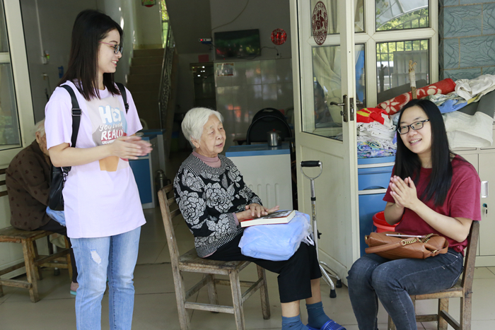 志愿者們圍坐在老人旁邊,詢問他們的生活情況、身體情況,叮囑他們注意保暖、保重身體,傾聽他們的人生故事和叮嚀告誡,并為給他們唱紅歌、讀故事、講新聞,豐富他們的精神生活。老人們對志愿者的到來感到十分高興,和志愿者一起合唱《團結(jié)就是力量》、《歌唱祖國》、《沒有共產(chǎn)黨就沒有新中國》等歌曲。護老院處處洋溢著歡樂的氣氛,老人們的臉上洋溢著幸福。